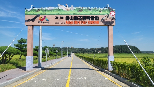 한편 지난 9월 3일 서산버드랜드 입구에는 제14회 아시아 조류박람회 개최를 알리는 조형물이 설치됐다.
