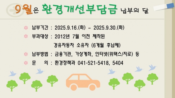 이는 친환경차 보급 확대와 노후경유차 조기폐차 사업 등으로 대상 차량 감소가 원인인 것으로 파악된다”며 “납부 기한이 지나면 가산금 등 불이익이 발생할 수 있으니 기한 내에 납부를 당부드린다”고 말했다.