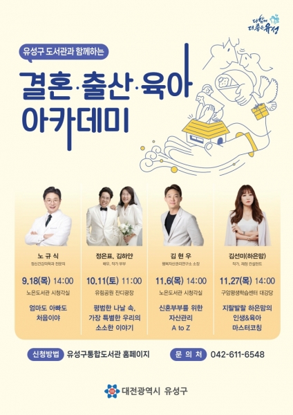 [Ytv영상스토리] 대전 유성구는 오는 18일부터 저출생 문제에 대한 근본적인 해결책을 모색하기 위한 ‘결혼·출산·육아 아카데미’를 운영한다.