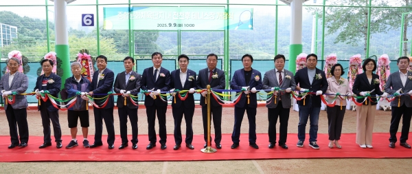 이응우 시장은 기념사를 통해 테니스장 개장을 축하하며 테이프 커팅식과 시타 행사로 새 시설의 시작을 알렸다.