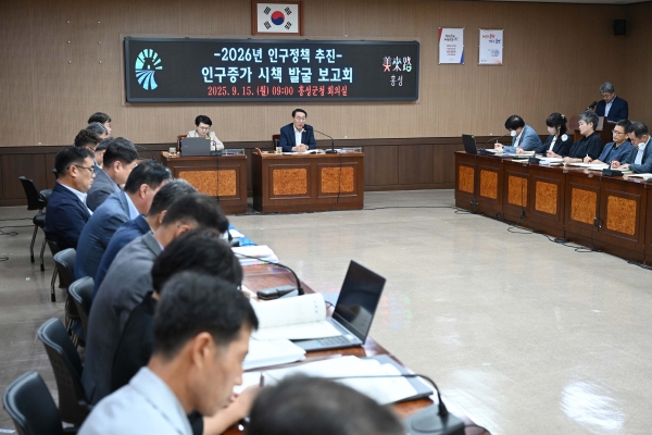 이용록 홍성군수는 “인구는 지역의 미래와 직결된 핵심 과제”며 “오늘 논의된 시책들이 군민의 삶을 지키고 더 많은 사람이 홍성에 정착할 수 있는 밑거름이 되도록 전 부서가 힘을 모아달라고”고 당부했다.