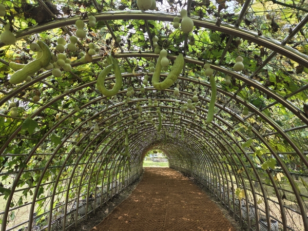 이번 조롱박터널은 무더운 여름철 그늘을 제공하며 존재감을 나타냈으며 계절이 바뀌며 자연스럽게 조롱박·수세미 열매가 주렁주렁 열려 관람객들의 눈길을 끌고 있다.