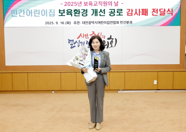 대전시의회 이금선 의원, 민간 어린이집 발전과 교직원 권익 보호·증진에 기여한 공로로 감사패 받아