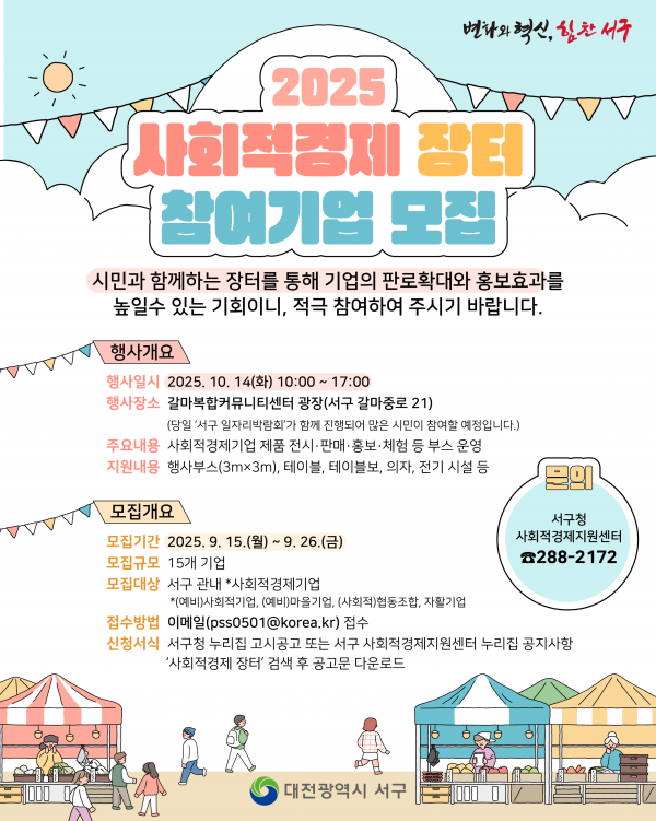 대전 서구, ‘2025 사회적경제 장터’ 참가 기업 모집