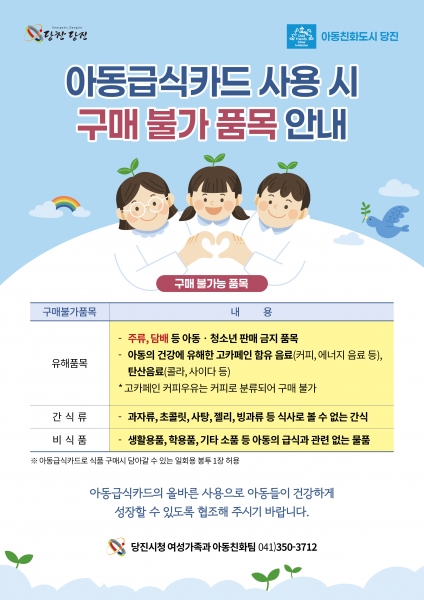 당진시, 아동급식카드 구매 불가 품목 안내문 배포
