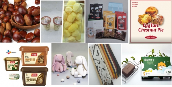 이번에 선정된 답례품은 △공주 알밤과 공주 생맛밤 △알밤고추장청태구이와 알밤청국장 세트 △백제왕밤파이 세트 △전통장 세트 △자연염색 스카프와 애착 인형아람누리) △밤 비누 등이다.