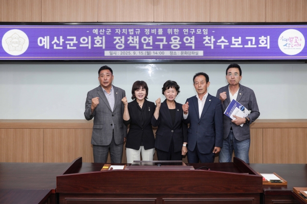 예산군의회는 이번 착수보고회를 시작으로 11월까지 연구 성과를 구체화하고 자치법규 정비 및 개선 과제를 발굴할 계획으로 향후 발굴된 자치법규 과제를 집행부와 공유하는 자리를 마련하고 이를 토대로 관련 조례 개정 및 폐지 등 실직적인 조치를 추진할 계획이다.