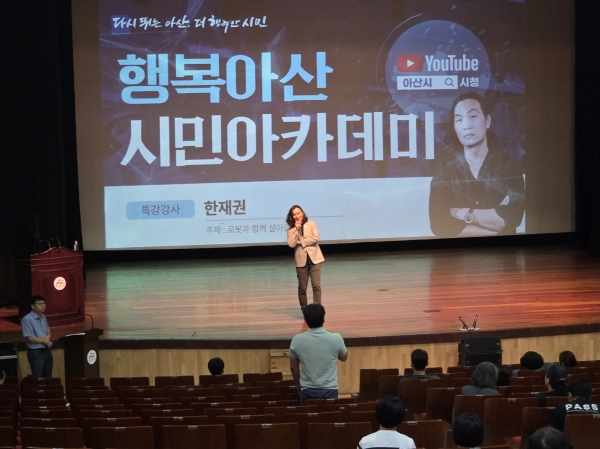[Ytv영상스토리] 아산시는 16일 평생학습관 아산아트홀에서 행복아산시민아카데미 네 번째 강연으로 한재권 한양대학교 로봇공학과 교수의 ‘로봇과 함께 살아갈 세상’을 진행했다고 밝혔다.