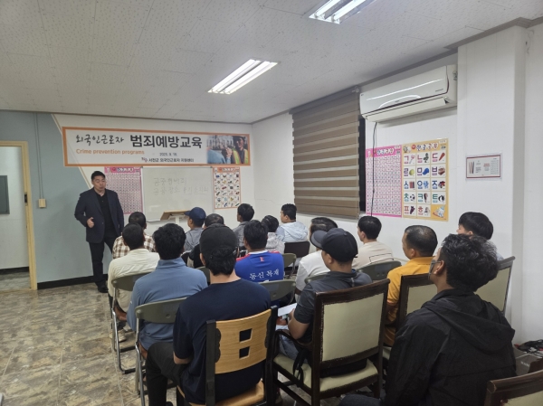 이번 교육은 외국인 근로자들이 한국 사회에 안정적으로 적응하고 지역사회 일원으로서 자립할 수 있도록 지원하기 위한 맞춤형 프로그램으로 충남경찰청 치안 담당자가 직접 방문해 진행했다.