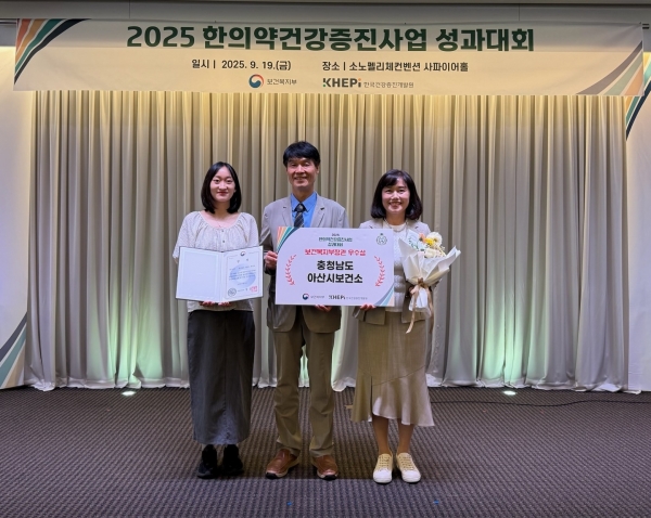 최원경 아산시보건소장은 “아산시의 한의약 건강증진사업이 대외적으로 인정받아 매우 뜻깊다”며 “앞으로도 주민 요구와 지역 자원을 적극 반영해 건강한 아산을 만들기 위해 최선을 다하겠다”고 말했다.
