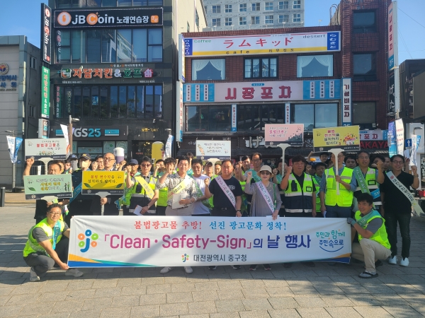 이번 캠페인은 중구 건축과 광고물팀 주관으로 옥외광고협회, 중부경찰서 범죄예방대응과, 은행·대흥동 상점가 상인 등 민·관·경이 합동으로 참여해 불법광고물 정비와 계도·단속활동을 실시했으며 노후· 위험 간판 등 광고물 안전 점검도 병행했다.