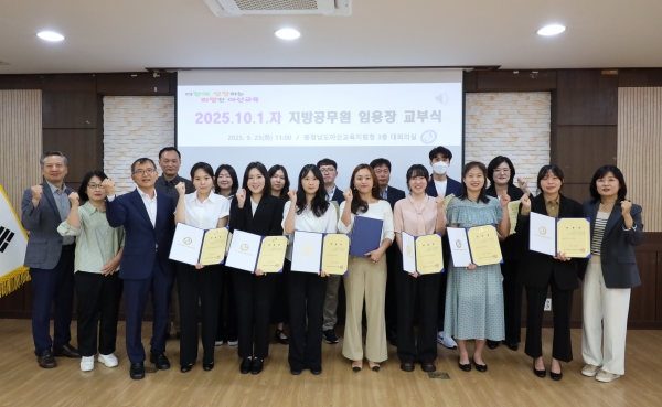 [Ytv영상스토리] 아산교육지원청은 9월 23일 오전 11시, 3층 대회의실에서 2025년 10월 1일자로 인사 발령된 일반직 공무원 17명을 대상으로 임용장 교부식을 개최했다.