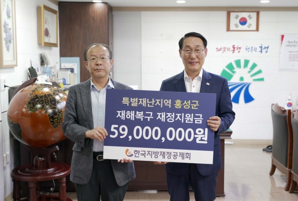 이용록 홍성군수는 “한국지방재정공제회의 따뜻한 관심과 지원에 깊이 감사드린다”며 “전달받은 피해복구 지원금을 집중호우 피해 주민들의 회복을 위해 신속하고 효율적으로 활용하겠다.
