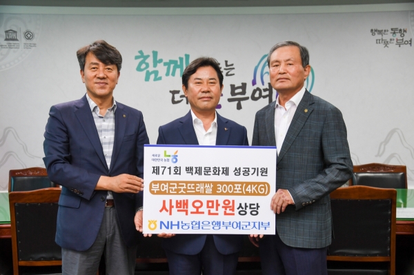 류경환 지부장은 “올해 71회를 맞이하는 백제문화제는 부여군민의 자긍심을 드높이는 의미 깊은 행사”며 “군민들의 적극적인 참여와 기관들의 협력이 어우러져 성공적인 축제가 되길 바라며 이번 기부금이 작게나마 힘이 되기를 바란다”고 전했다.