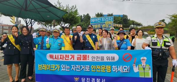 [Ytv영상스토리] 당진경찰서는 25일 계성초등학교 사거리에서 픽시자전거 사고 예방을 위한 유관기관 합동 캠페인을 실시했다.