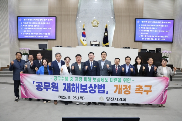 [Ytv영상스토리] 당진시의회는 25일 열린 제123회 임시회 제1차 본회의에서 심의수 의원이 발의한 ‘공무원 재해보상법’ 개정 촉구 건의안을 채택했다.