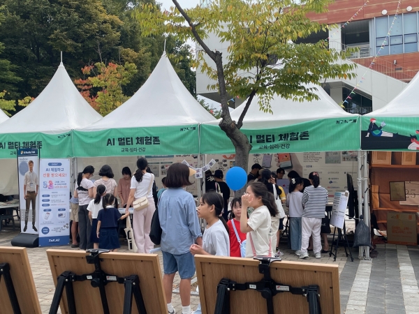 지난 27일 갈마문화공원에서 개최된 책 축제에서 서구는 관내 AI 기술 보유 여성 벤처기업들과 협업해 체험 공간을 운영, △AI 그림 분석 △AI 건강 검진 플랫폼 △AI 영어 학습 체험 등 첨단 기술을 선보였다.