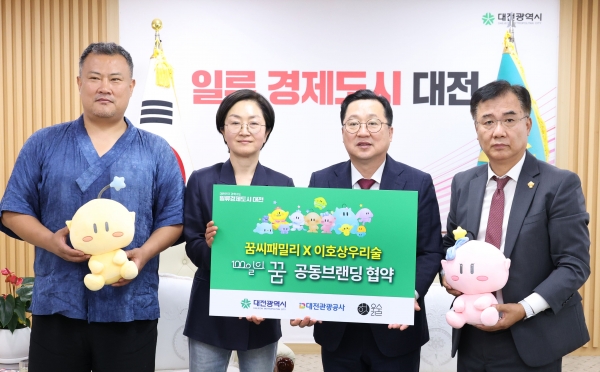 [Ytv영상스토리] 대전시는 10일 시청 응접실에서 대전관광공사, 우리술협동조합과 함께 공동브랜딩 업무협약을 맺고 대전 대표 캐릭터 꿈돌이를 적용한 프리미엄 전통주 ‘100일의 꿈’을 출시한다고 밝혔다.