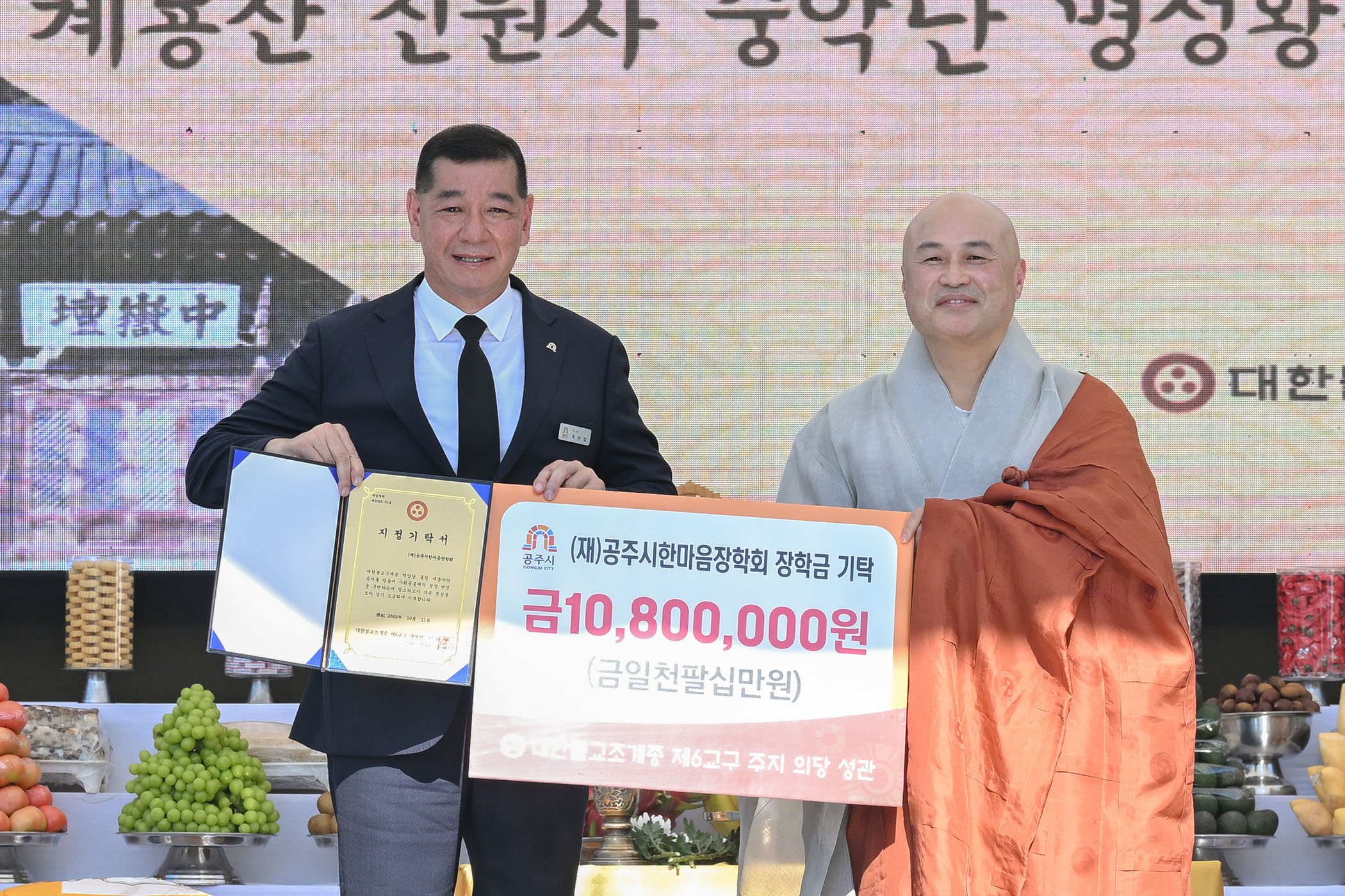 이날 장학금 기탁식은 신원사에서 봉행된 ‘제14회 명성황후 추모대제’ 와 함께 진행됐으며 불교계 전통문화의 계승과 더불어 지역사회 발전에 기여하고자 하는 신원사의 사회공헌 의지를 보여준 자리였다.