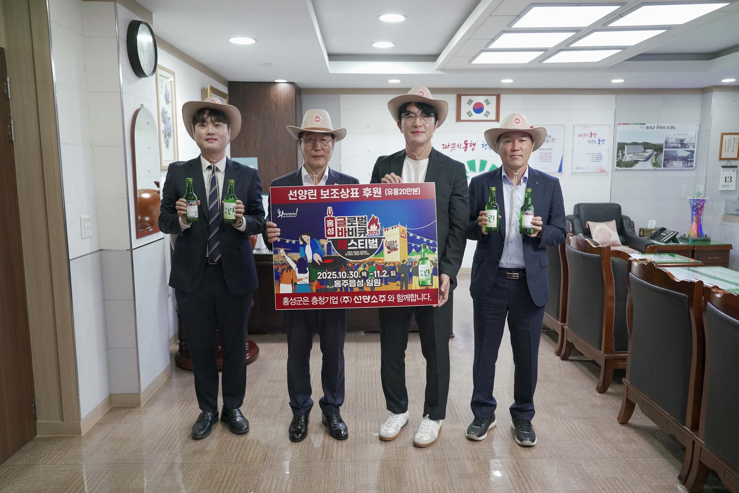 [Ytv영상스토리] 홍성군은 지난 13일 홍성군청 군수실에서 ㈜선양소주와 ‘2025 홍성글로벌바비큐페스티벌’ 홍보라벨 소주 전달식을 실시했다고 밝혔다.