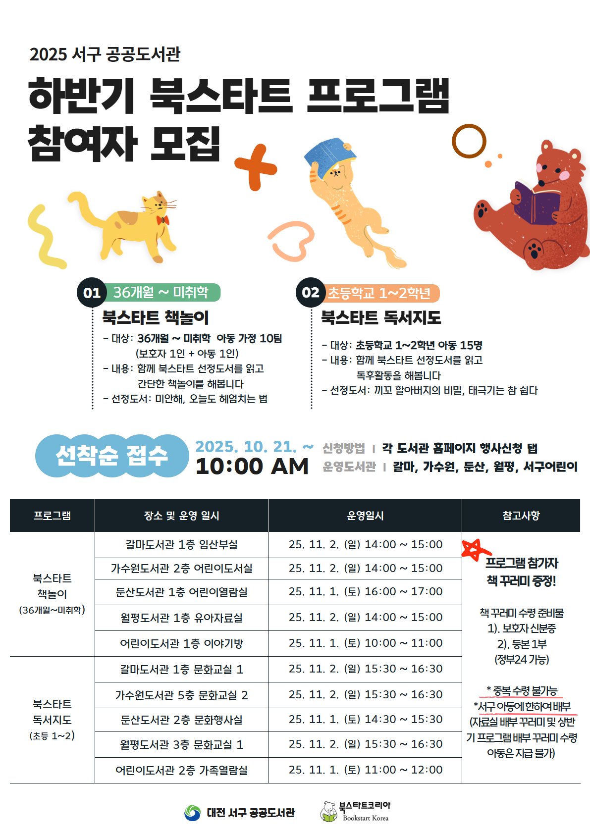 대전 서구 하반기 북스타트 프로그램 홍보물