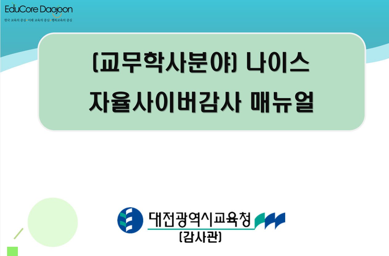 이번 연수를 위해 나이스 자율사이버점검 매뉴얼을 제공했고 이 매뉴얼로 교원 누구나 쉽게 교무학사분야를 자체 점검할 수 있도록 했다.