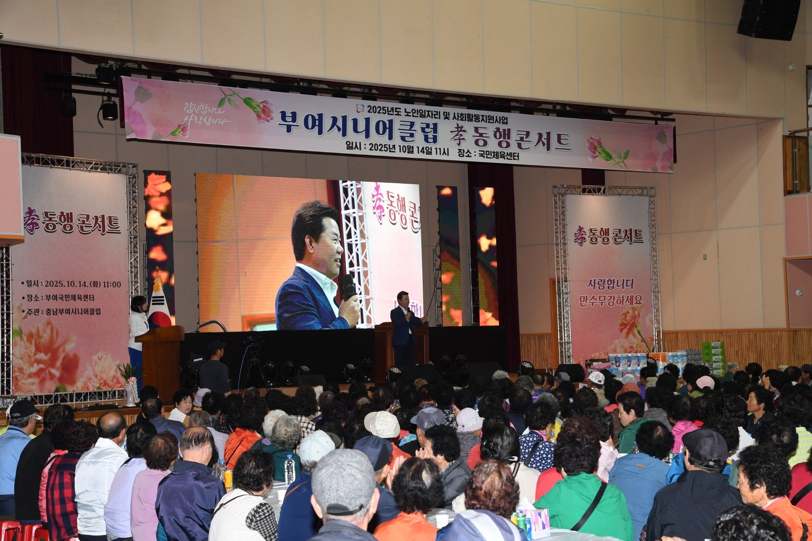 [Ytv영상스토리] 부여시니어클럽은 지난 14일 부여국민체육센터에서 노인일자리 및 사회활동 지원사업 참여 어르신 약 1,800명을 대상으로 문화 활동인 ‘孝 동행 콘서트’ 행사를 성황리에 개최했다.