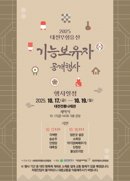 [Ytv영상스토리] 대전시는 17일부터 19일까지 사흘 동안 대전전통나래관에서 ‘2025년 무형유산 기능보유자 합동공개행사’를 개최한다.