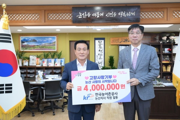 백성현 논산시장은 “지역 발전의 든든한 동반자인 한국농어촌공사 논산지사 직원 여러분께 진심으로 감사드린다”며 “보내주신 기부금은 시민 복지와 지역 발전을 위해 소중히 사용하겠다”고 밝혔다.