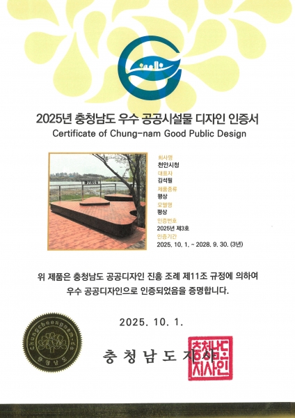 천안시, 충청남도 최초 우수공공시설물 디자인 인증제 선정