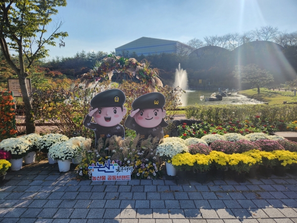 특히 논산시의 농산물 공동브랜드 ‘육군병장’ 캐릭터를 활용한 국화 조형물도 함께 전시되어 지역 브랜드의 인지도를 높이고 농산물 홍보 효과를 더할 것으로 기대된다.