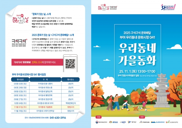[Ytv영상스토리] 부여군은 오는 11월 1일 오후 1시부터 5시까지 정림사지 일원에서 ‘2025 문화가 있는 날 ‘구석구석 문화배달’’ 일곱 번째 이야기 ‘우리동네 가을동화’를 개최한다고 밝혔다.