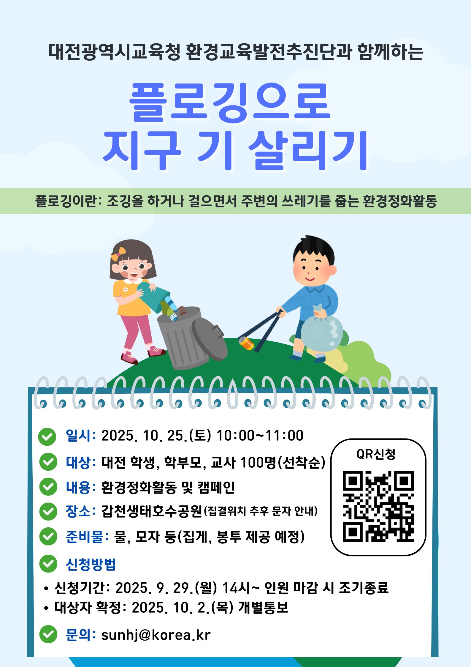 [Ytv영상스토리] 대전시교육청은 10월 25일 갑천생태호수공원에서 가정·지역 연계 생태전환교육 실천 확산을 위한 2025년‘지구 기살리기 캠페인’플로깅을 실시한다고 밝혔다.