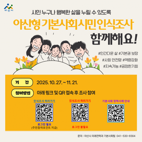 아산시, ‘아산형 기본사회’ 실현 위한 시민 인식 조사 실시