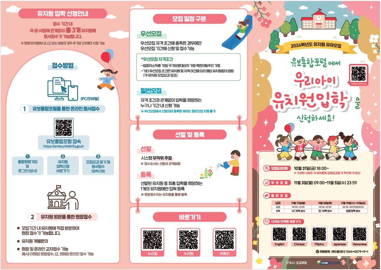 [Ytv영상스토리] 세종시교육청(교육감 권한대행 부교육감 구연희, 이하 세종시교육청)은 유보통합포털을 통해 2026학년도 우리아이 유치원입학을 2025년 11월 3일(월)부터 시작한다.