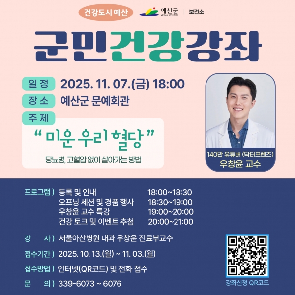 예산군, 서울아산병원 우창윤 교수 초청 ‘건강도시 예산 군민건강강좌’ 개최