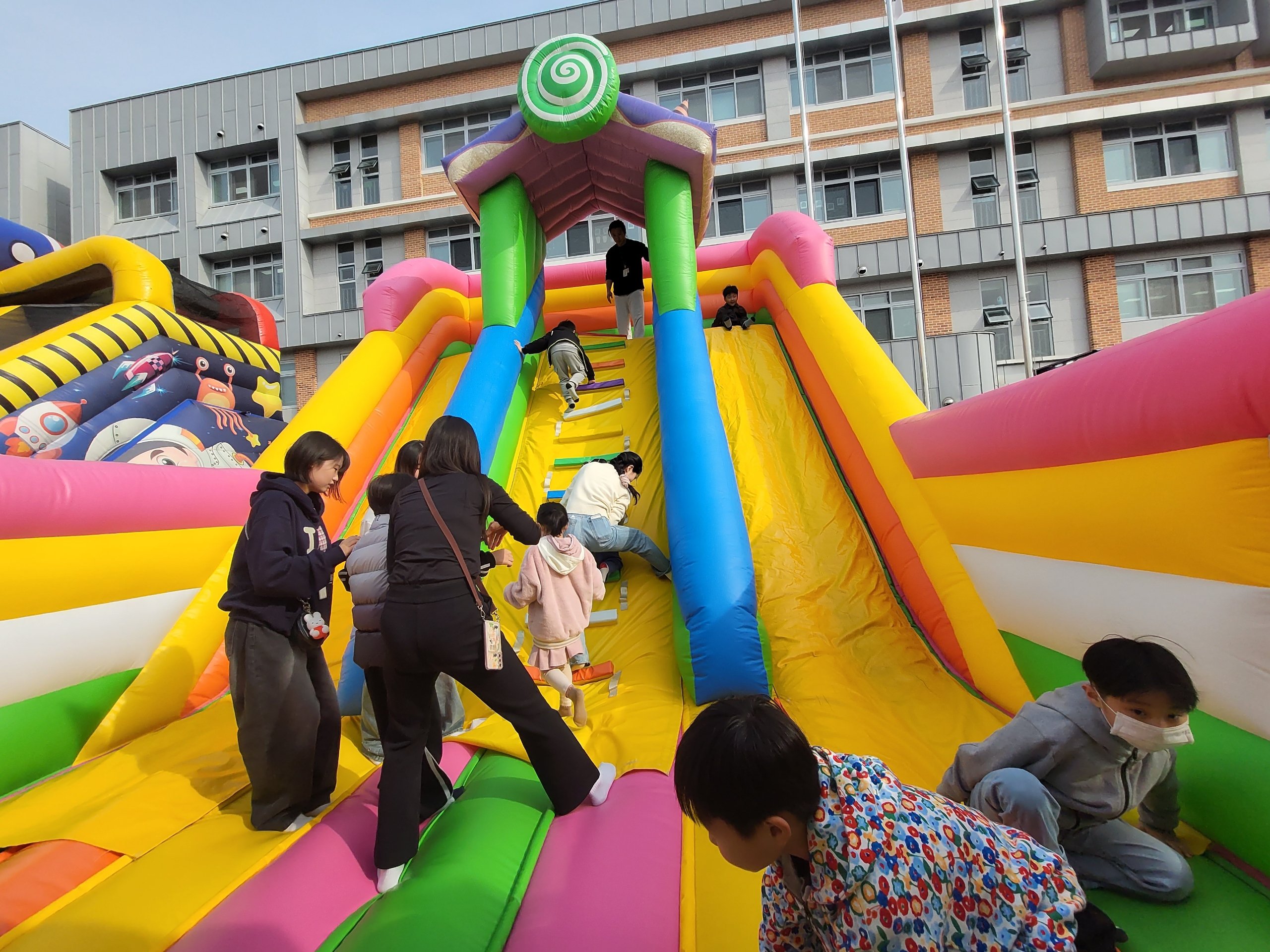 학교 운동장에는 대형 풍선놀이틀이 설치되어 운영됐으며, 무궤도 열차를 타고 학교 주변을 돌아보며 가을 정취를 만끽했다.