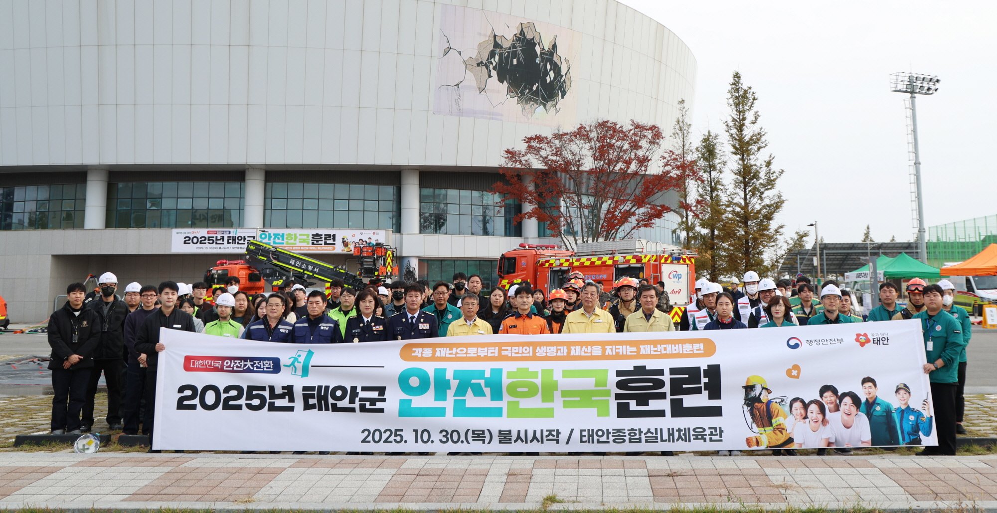 태안군은 지난 10월 30일 태안종합실내체육관에서 군 관계자를 비롯해 태안경찰서 태안소방서 고용노동부 서산출장소, 제1789부대, 한국전기안전공사, 한국전력태안지사, 의용소방대, 자율방재단 등 11개 기관 171명이 참석한 가운데 ‘2025년 재난대응 안전한국훈련’을 실시했다고 밝혔다.