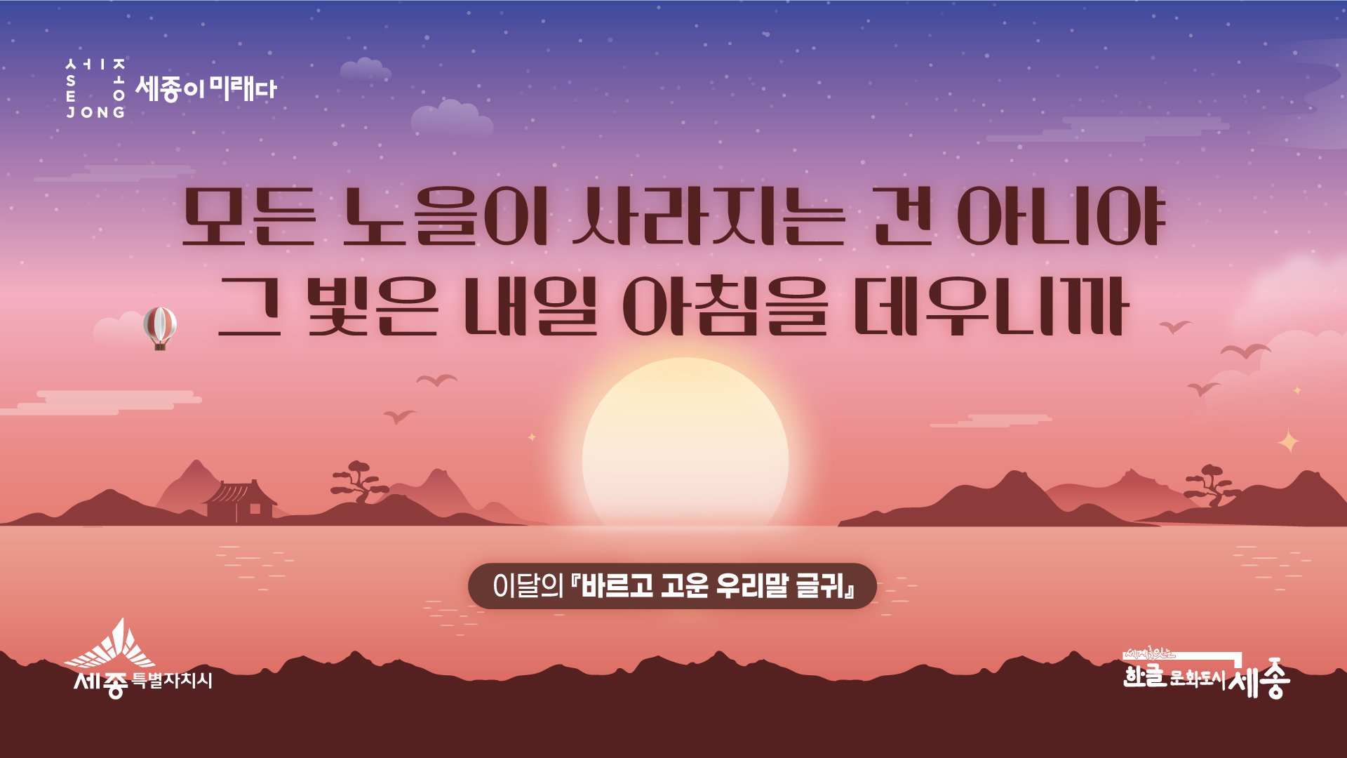 [Ytv영상스토리] ‘모든 노을이 사라지는 건 아니야 그 빛은 내일 아침을 데우니까’세종시가 시민 참여로 선정한 11∼12월 ‘바르고 고운 우리말 글귀’를 발표했다.