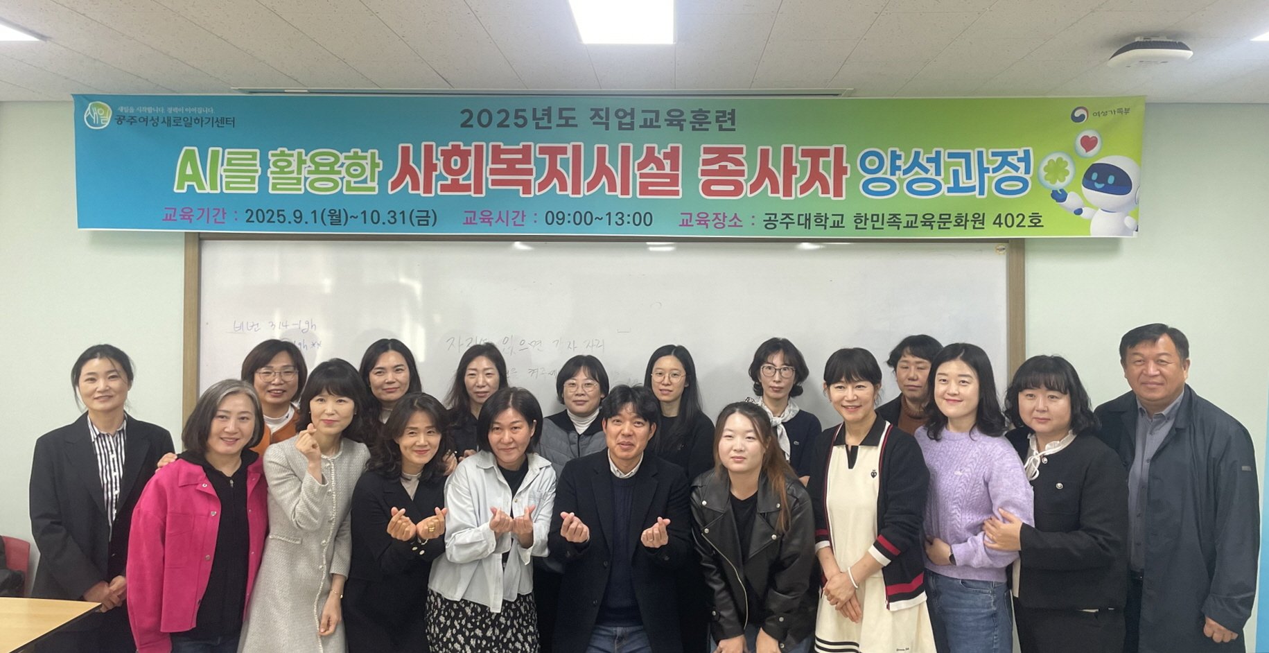 [Ytv영상스토리] 공주여성새로일하기센터는 지난 31일 국립공주대학교 옥룡캠퍼스 평생교육원에서 국비지원 직업교육훈련 ‘인공지능(AI)을 활용한 사회복지시설 종사자 양성과정’을 성공적으로 마무리했다고 밝혔다.