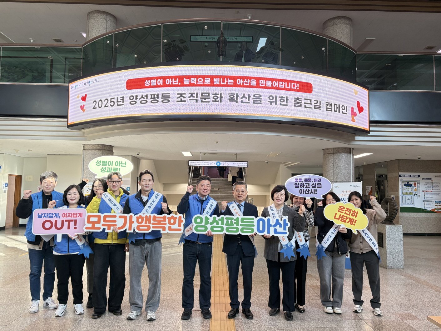 이번 캠페인은 ‘성별이 아닌, 능력으로 빛나는 아산을 만들어갑니다’라는 표어(슬로건) 아래, 직장 내 성평등 의식 확산과 공정한 조직문화 조성의 중요성을 직원들과 공유하기 위해 마련됐다.
