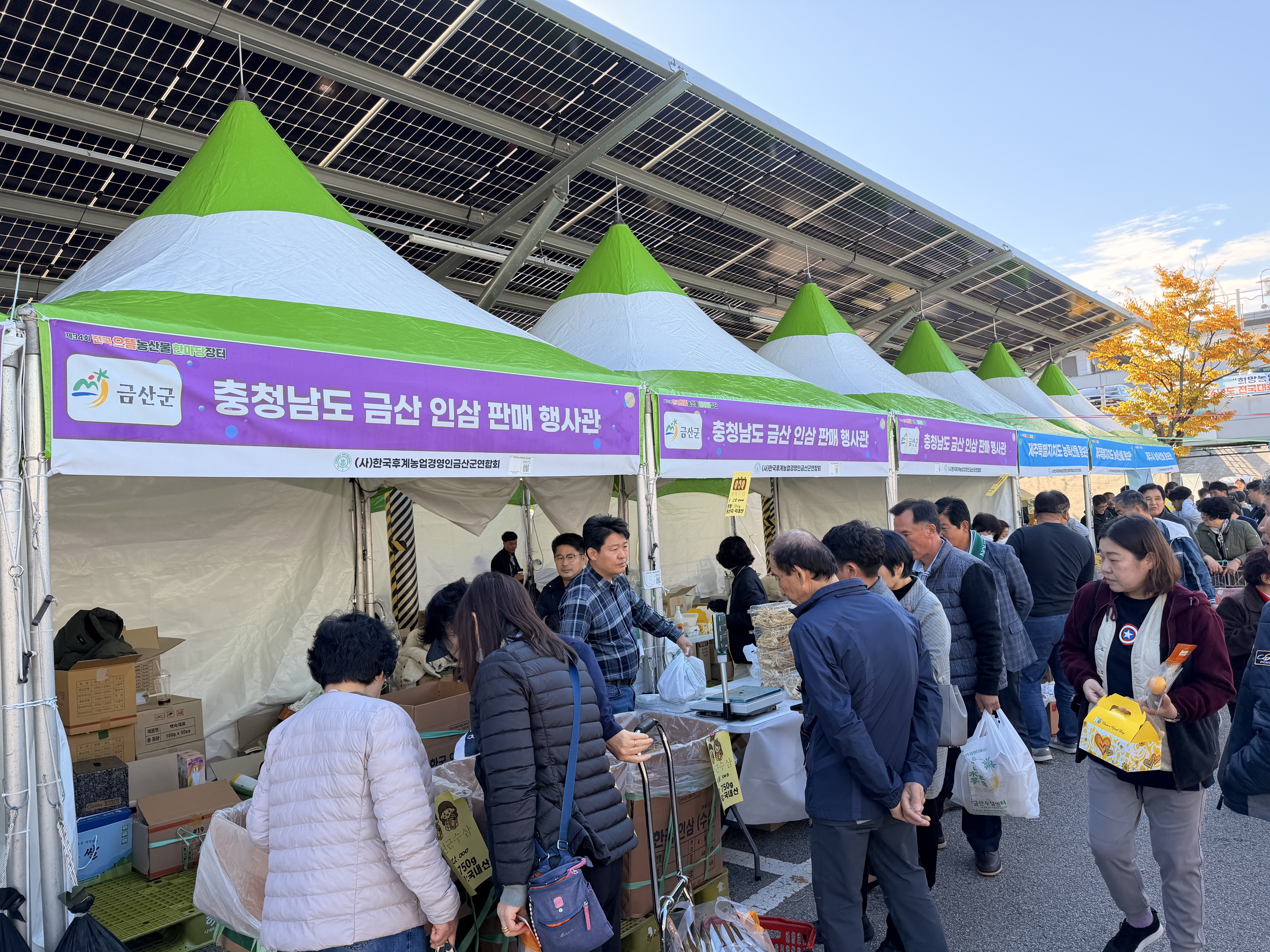 이번 행사는 전국 각지의 농업인이 한자리에 모여 지역 농산물을 홍보하고 판로를 확대하기 위해 마련된 자리로 금산군에서는 한국후계농업경영인 금산군연합회가 참여해 금산 인삼 판매 부스를 운영했다.