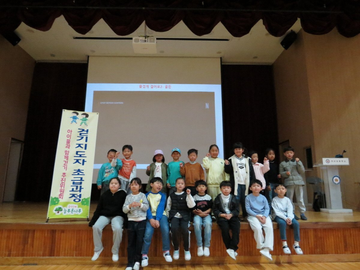 교육문의: 늘푸른나무 736-1223 / 010-3427-4556 연산초등학교 학생들 전원 수료증을 받고 걷기운동 실천을 다짐했다.