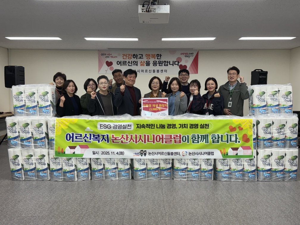 논산시 시니어클럽은 지난 4일 지역 저소득 어르신들의 생활 안정을 돕기 위해 친환경 재생 화장지 3,000개를 기증했다.