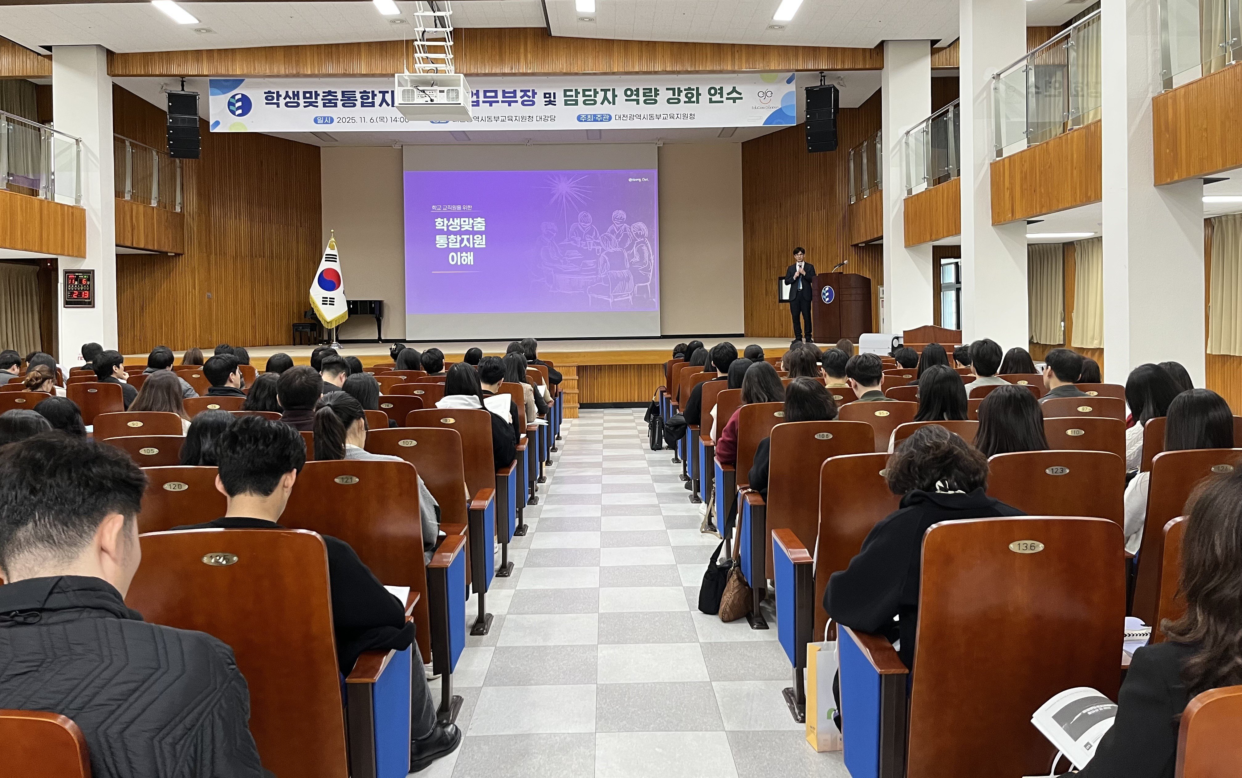 [Ytv영상스토리] 대전동부교육지원청은 2026년 3월 전면 시행 예정인 ‘학생맞춤통합지원법’에 대비해, 11월 6일 동부교육지원청 대강당에서 관내 초·중학교 학생맞춤통합지원 관련 업무부장 및 담당자 220명을 대상으로 실무형 역량강화 연수를 진행했다고 밝혔다.