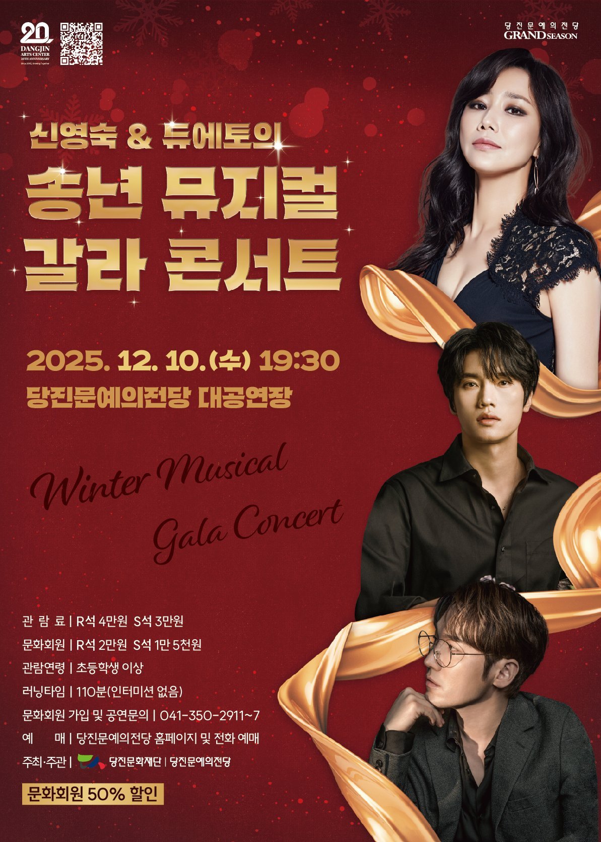[Ytv영상스토리] 당진문화재단·당진문예의전당은 당진문예의전당 개관 20주년을 기념해 특별 기획공연 ‘신영숙 & 듀에토의 송년 뮤지컬 갈라 콘서트’를 오는 12월 10일 오후 7시 30분, 당진문예의전당 대공연장에서 선보인다.