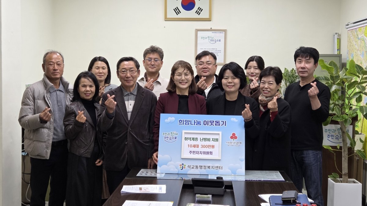 [Ytv영상스토리] 대전 중구 석교동은 지난 7일 다가오는 겨울철을 앞두고 주민자치위원회에서 지역 내 취약계층에 난방비를 지원했다고 밝혔다.
