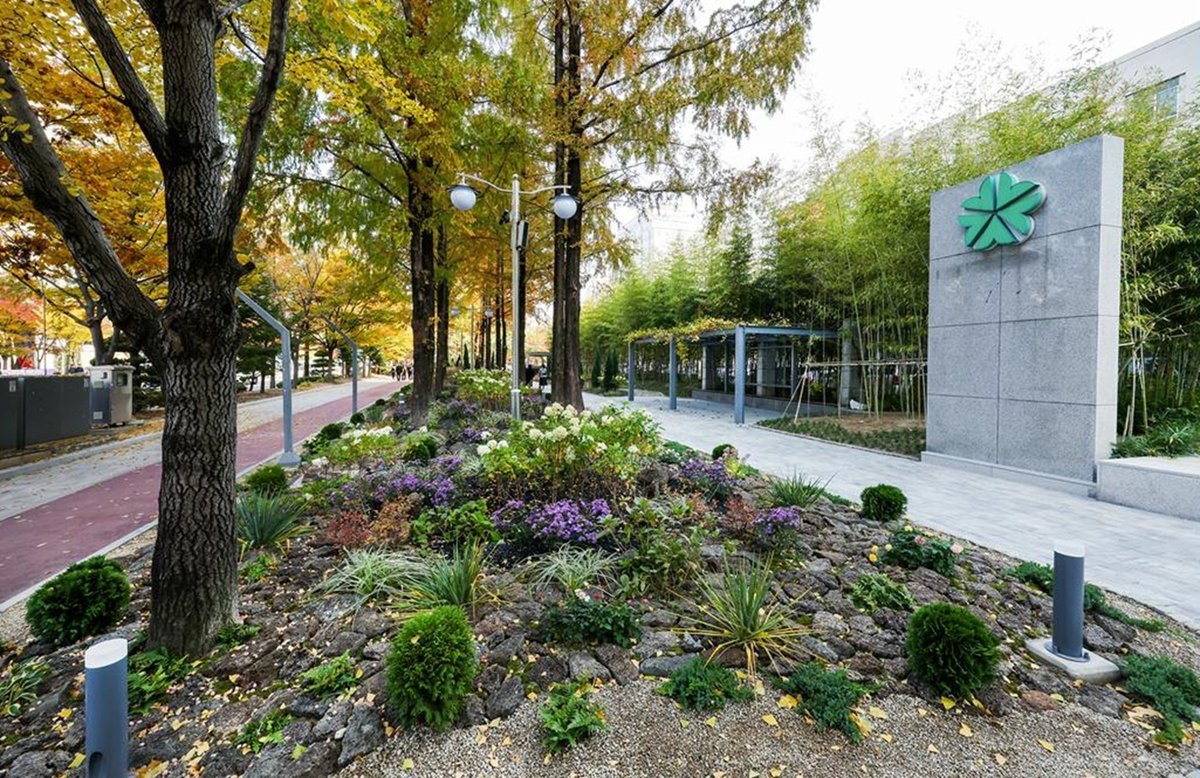 새롭게 조성된 시민애뜰은 에메랄드그린, 블루엔젤 등 다양한 수목과 수국 등 계절별 화단이 어우러져 사계절 내내 변화가 있는 경관을 선보인다.