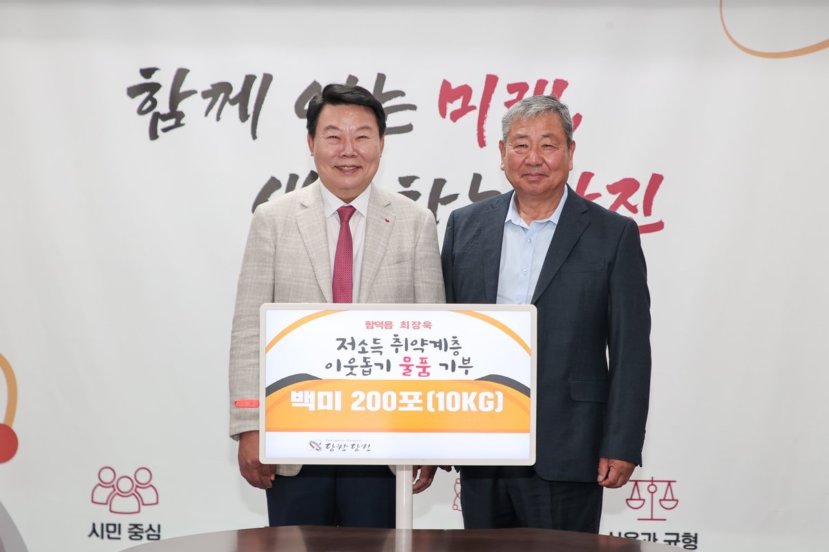 오성환 시장은 “지역 공동체를 위해 지속적으로 나눔을 실천해 온 최장욱 회장님께 깊이 감사드린다”며 “기탁하신 쌀은 꼭 필요한 분들께 책임 있게 전달하겠다”고 말했다.