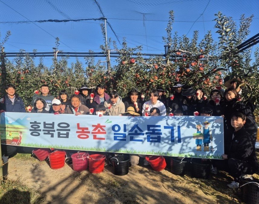 이번 활동에는 홍성군청 인구전략담당관, 자치행정과, 회계과, 축산과 등 직원 30여명이 함께 참여했으며 홍북읍 봉신리에 위치한 사과농장을 찾아 수확 작업을 도우며 농민들의 일손을 거들었다.
